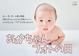 毎月第一木曜日に開催する「あかちゃんフォトの日」は、0歳の赤ちゃんのための、ちいさな撮影イベント