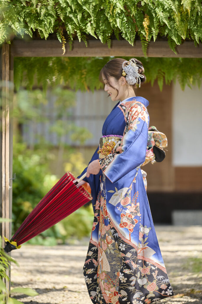撮影場所でのお支度なので、時間に追われることもなく、鏡の前でゆっくりと振袖に袖を通し、髪を整える時間。少しずつ変わっていく自分の姿を見つめる、そんな落ち着いたひとときをぜひ味わっていただけたらと思います。